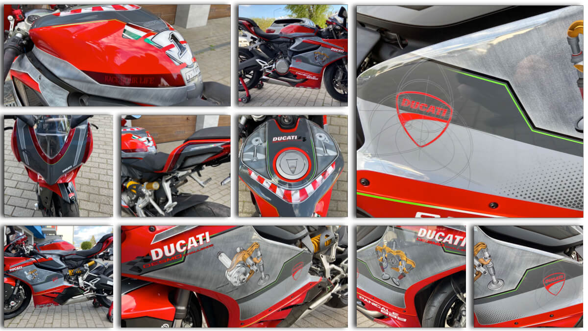 W tym przypadku, przemalowanie całego motocykla zajęło 1,5 miesiąca pracy, od projektu do wykonania. Duża ilość elementów oraz szczegółowość grafik przełożyła się na czas realizacji. Efekt finalny warty jest tego czasu.